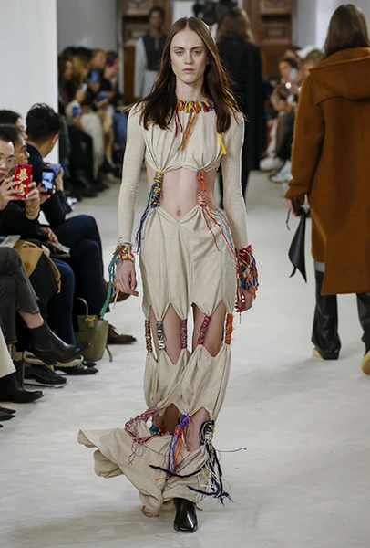 Loewe уверенно возвращает славу одного из самых интересных показов парижского смотра. Благодарить за это нужно 33-летнего Джонатана Андерсона – дизайнера, которому четыре года назад и вверили испанский бренд. Сначала он изменил логотип, сделав его более современным – и как в воду глядел: вслед за ним фирменный стиль изменили Calvin Klein, Balenciaga и даже такая консервативная марка, как Diane von Furstenberg.