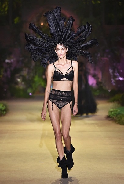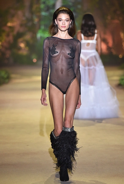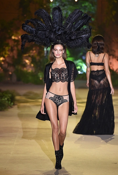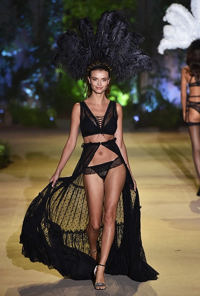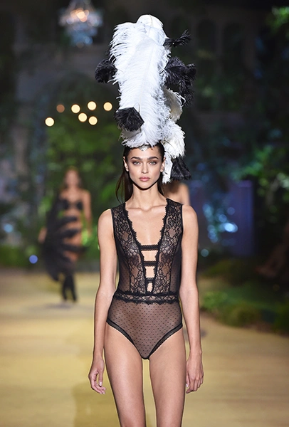 32-летняя россиянка уже давно считается одной из главных муз бренда и часто появляется в рекламных кампаниях, а в новом шоу Ирине выпала честь открыть показ и продемонстрировать полупрозрачное черное боди — эффектное появление девушки не осталось без внимания. Кроме нее в показе участвовали 25 моделей, среди которых были замечены Анна Вьялицына и Евгения Катава — россиянки, которые давно полюбились бренду и уже участвовали в более ранних шоу.