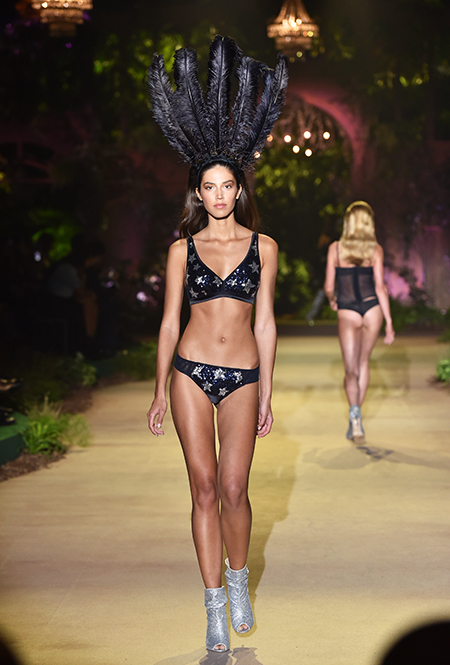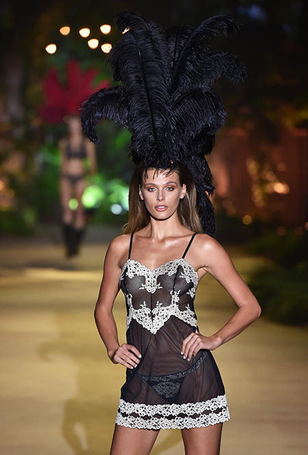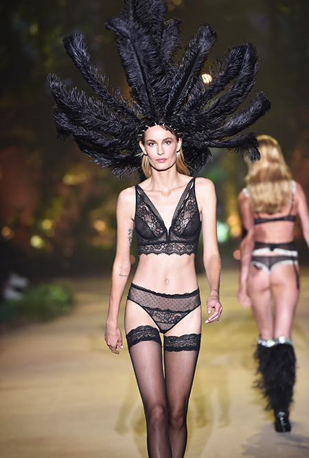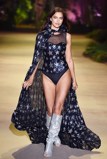 32-летняя россиянка уже давно считается одной из главных муз бренда и часто появляется в рекламных кампаниях, а в новом шоу Ирине выпала честь открыть показ и продемонстрировать полупрозрачное черное боди — эффектное появление девушки не осталось без внимания. Кроме нее в показе участвовали 25 моделей, среди которых были замечены Анна Вьялицына и Евгения Катава — россиянки, которые давно полюбились бренду и уже участвовали в более ранних шоу.