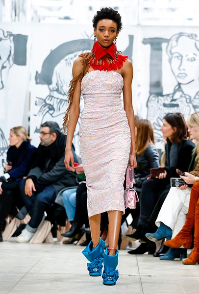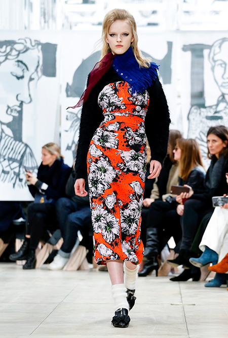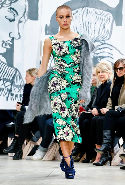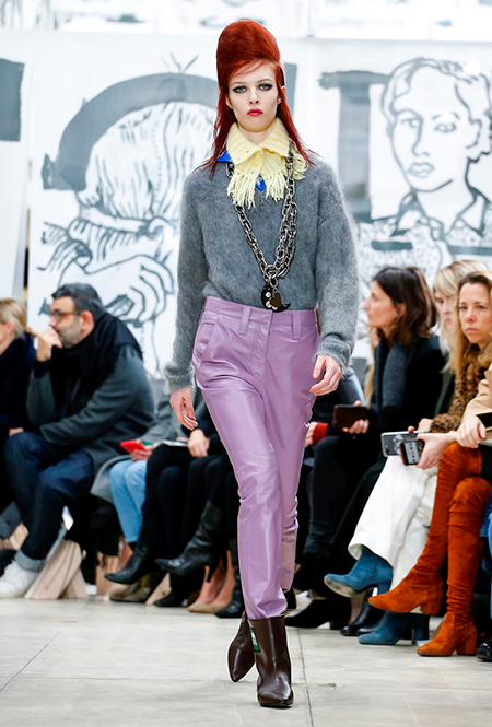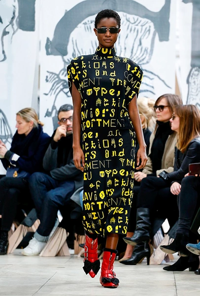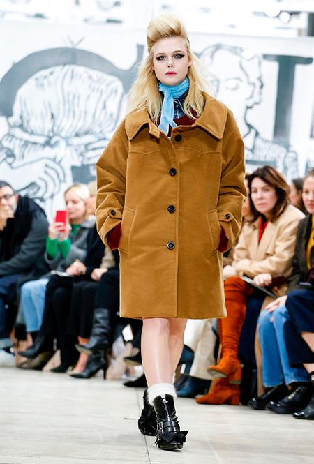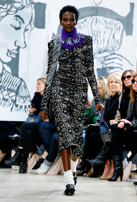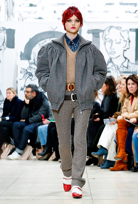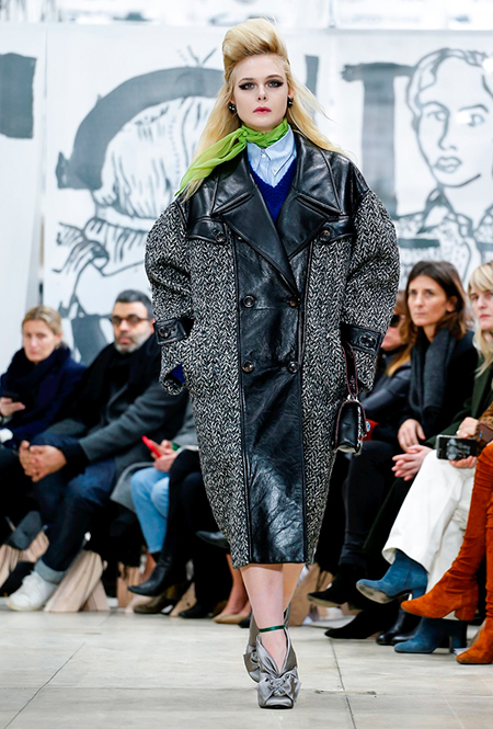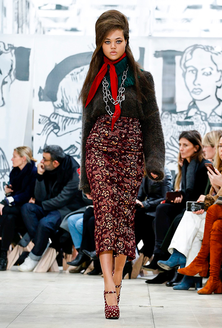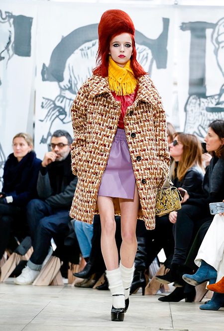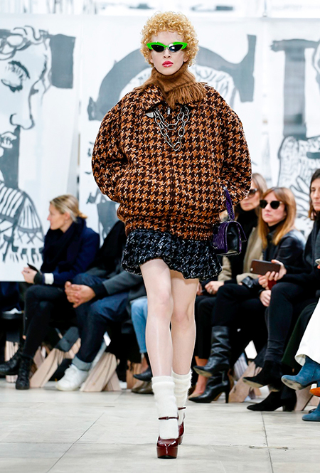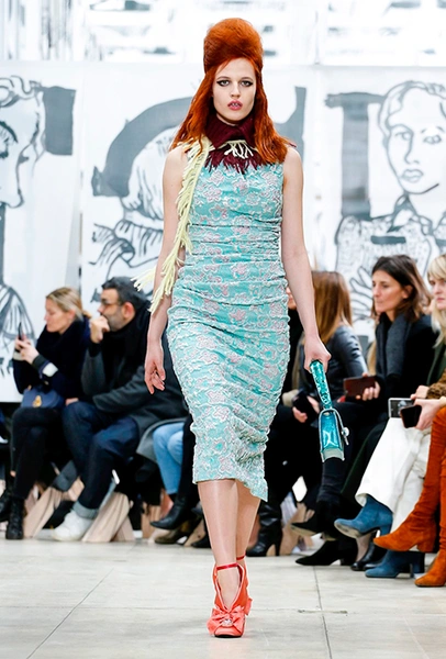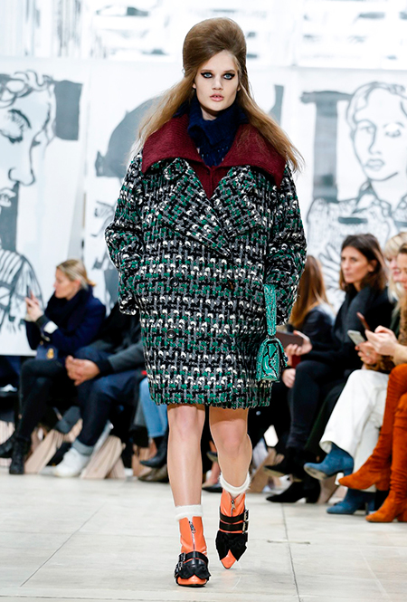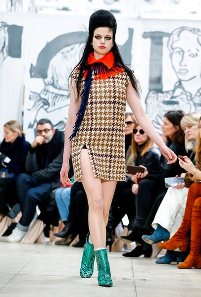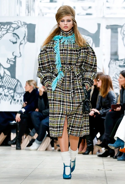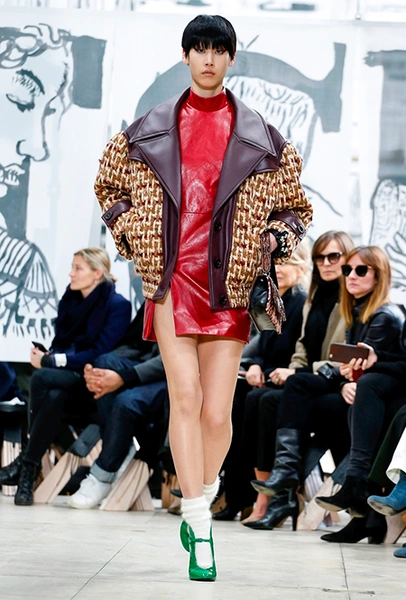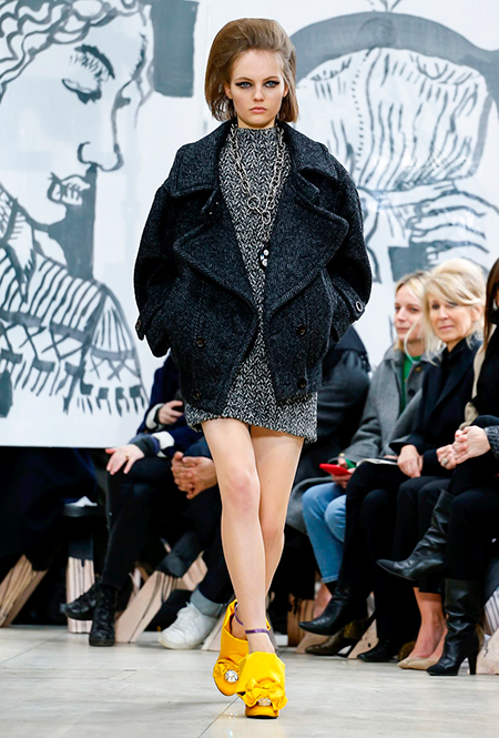 Показ прошел во дворце Иена в Париже – месте, где заседает французская экономическая палата. Оформили эти довольно строгие интерьеры вполне в духе Miu Miu – художники дизайнерского бюро M/M создали для шоу рисунки с буквами алфавита. Рядом с каждой буквой – черно-белое изображение модно одетой девушки в той или иной позе: одна стоит, скрестив руки на груди, другая – упирает руки в бока, и так далее. Самая Миучча Прада назвала это «алфавитом поступков и действий». Рисунки вполне подходят сути девушки Miu Miu – она переменчива, игрива, эмоциональна, экспрессивна и никогда не бывает статичной.