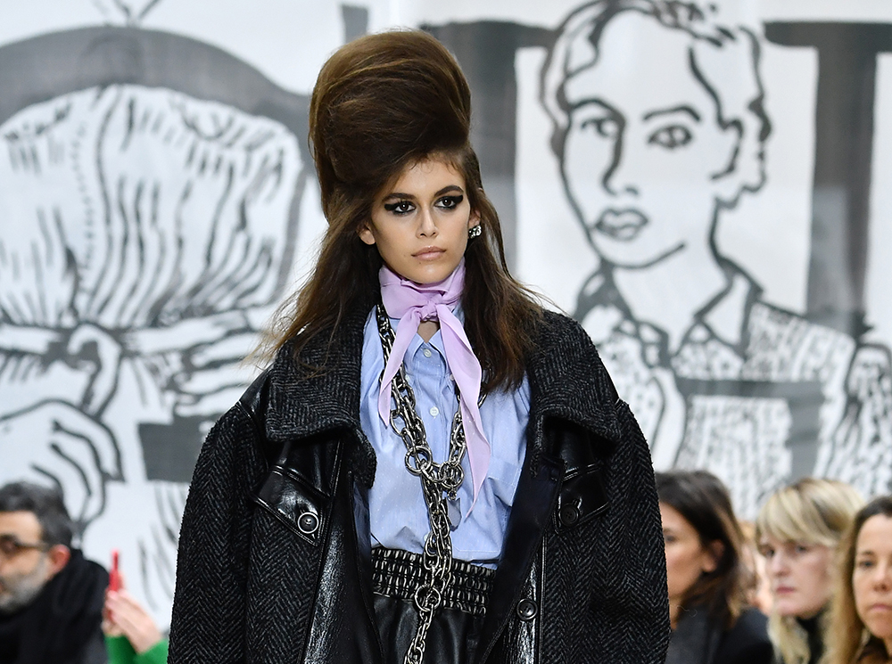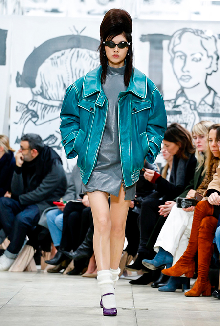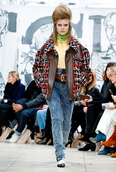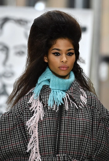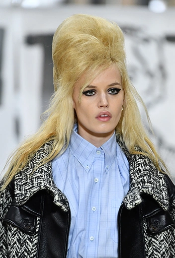 В коллекции есть как высокие «бабетты», которые, скорее напоминают о 60-х и отсылают к образу молодой Брижитт Бардо, так и более восьмидесятнические небрежные начесы, а также прически, где волосы обильно «залиты» лаком. У всех жителей пост-советского пространства, при виде моделей с показа, скорее всего, всплывут в памяти плакаты с изображением молодых Ирины Аллегровой и Ларисы Долиной. (читаем: Хит с начесом: культовая укладка «бабетта» (и как ее сделать))