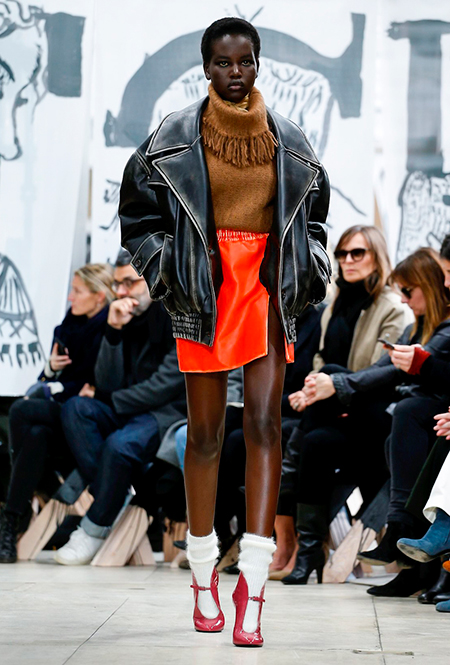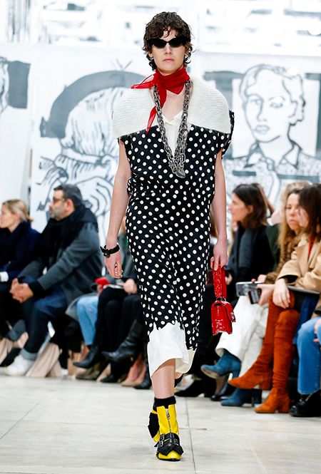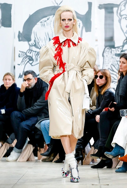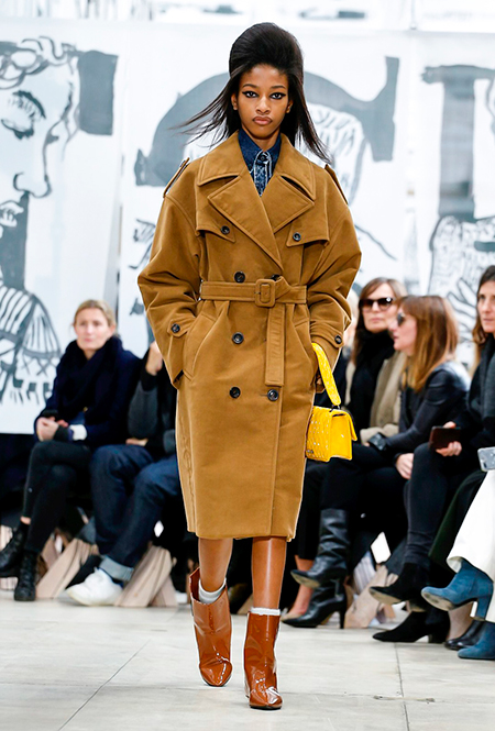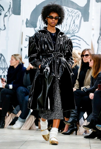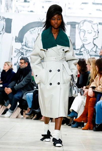 На подиуме в этот раз было настоящее царство безразмерных вещей. У курток, пальто, плащей и даже свитеров здесь гипертрофированные широкие, при этом не «жесткие», а покатые плечи. За счет плавных линий выглядит это неагрессивно, а, скорее, трогательно – будто девушка одолжила вещь бойфренда.