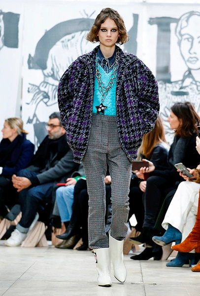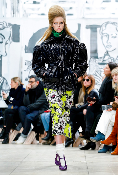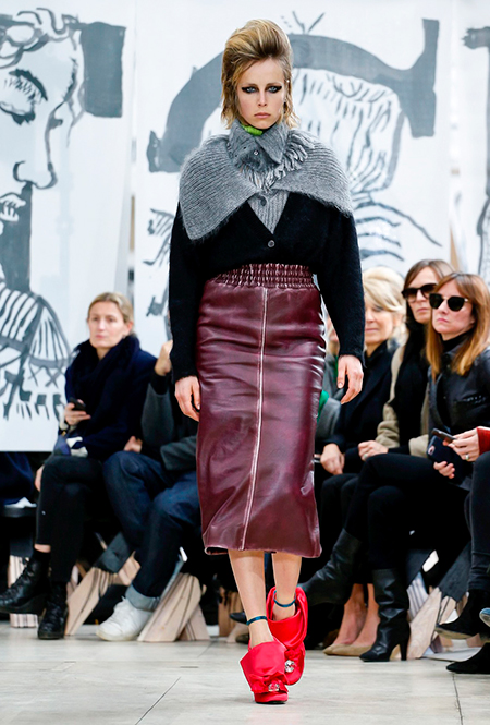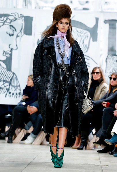 На этот раз ветер перемен занес героиню Miu Miu в 80-е, эпоху, которая не отпускает дизайнеров уже который сезон подряд. И поскольку полумер эта девушка (а если совсем точно, то создавшая ее Миучча Прада) не любит, то из этого десятилетия взяла все самое яркое, броское и бескомпромиссное. Так, чтобы ни у кого уж точно не осталось со мнений: перед вами эра ранних хитов Мадонны и фильма «Назад в будущее». Перечисляем самые яркие и экстравагантные приметы тех лет в интерпретации Миуччи.