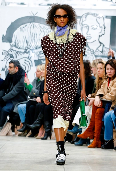 Именно в 80-е модные дизайнеры стали активно интересоваться хип-хоп-культурой, и в моду вошли массивные, как у рэперов, недорогие металлические украшения. Модели Miu Miu ходят по подиуму в длинных железных цепях на шее – таким позавидовал бы сам Run DMC. Правда, цепи Miu Miu – ультраженственные – на конце то сердечко, то полумесяц.