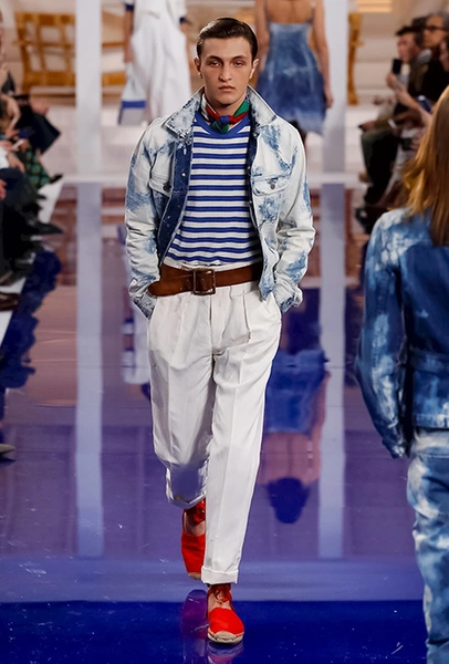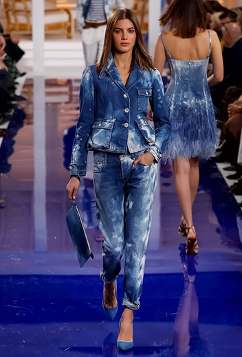 Новая коллекция Ральфа Лорена изобилует темно-синим денимом с белесыми разводами, который у нас принято называть «вареным». Западные журналисты полгода назад высказывали сомнения в актуальности этого материала – после того, как его в своей работе использовала Стелла МакКартни. Теперь критики, кажется, не предвидится: в новой коллекции Ральфа Лорена «варенки» избавляются от привкуса гранжа и приобретают новое звучание в морской тематике.
