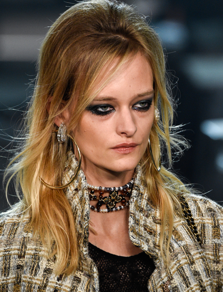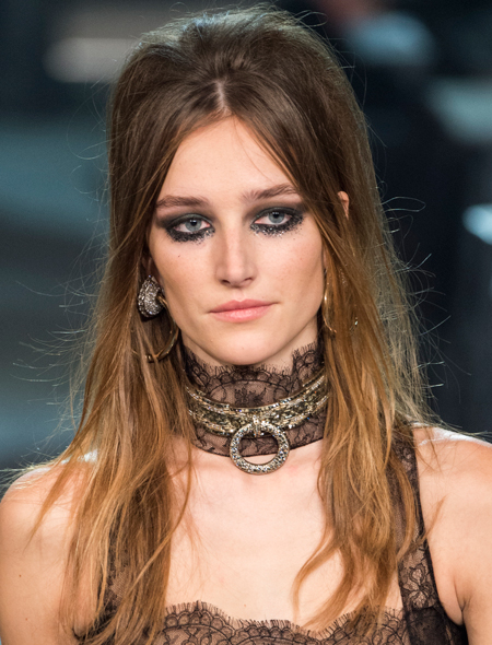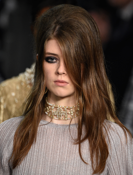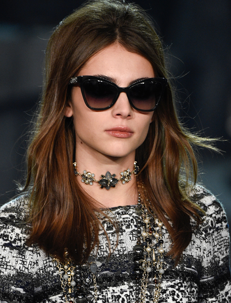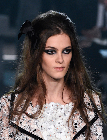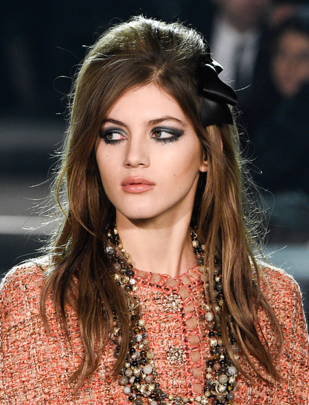 Модные украшения это не только золотые «побрякушки» и нарочитая бижутерия. Не удивимся, если в 2016 году их место займет что-то куда более простое и оттого гениальное. На показе Chanel добрая половина моделей выходила на подиум с очаровательными бантами из черного атласа в волосах. При этом и блондинки, и брюнетки смотрелись с этим украшением одинаково эффектно. Правда, чтобы повторить их успех необходимо выполнить два условия: сделать объемный начес на макушке и жирно подвести глаза черным карандашом.