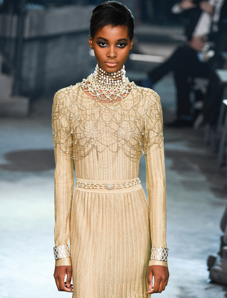 Список модных украшений относительно недавно вновь пополнился ожерельем-ошейником, или по другому - чокером. Украшение имело огромную популярность в 90-е годы XX века. Именно с этой модной эпохой его обычно связывают. Лагерфельд трансформировал изначально брутальный и даже агрессивный чокер в нечто куда более женственное. Широкие ажурные ошейники с жемчужными вставками, золотые обручи с кольцами, чем-то напоминающие рабские кандалы, или модели чуть более изящные, но непременно сверкающие и «богатые» особенно гармонично смотрятся с нарочито строгими комплектами.