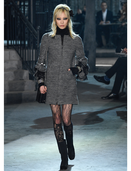 Не так давно кружевные колготки и чулки ассоциировались с вульгарностью и отсутствием вкуса, но, как мы знаем, мода - штука непостоянная. Последние пару сезонов демократичные марки нижнего белья скромно втискивали в свои коллекции одну-другую вещь с эффектом тату, но на большее не осмеливались. У Agent Provocateur и Oysho легко найти боди и бра из тонкого кружева, имитирующие нательные рисунки, но все это, как говориться, для домашнего использования. Креативный директор дома Chanel решил вывести тренд тату на новый уровень. На его показе модели гордо фланировали по декоративным парижским улицам в чулках, украшенных затейливыми цветочными узорами. Особенно сексуально и ничуть не вульгарно чулки-тату смотрелись с паре со строгим твидом и узкими юбками из лакированной кожи.
