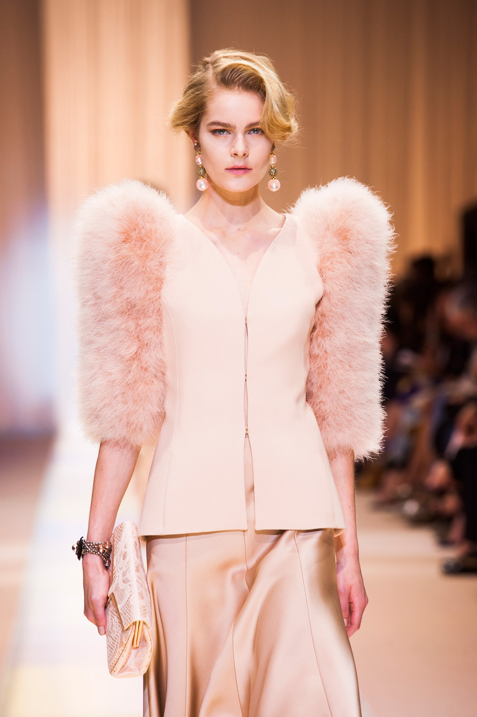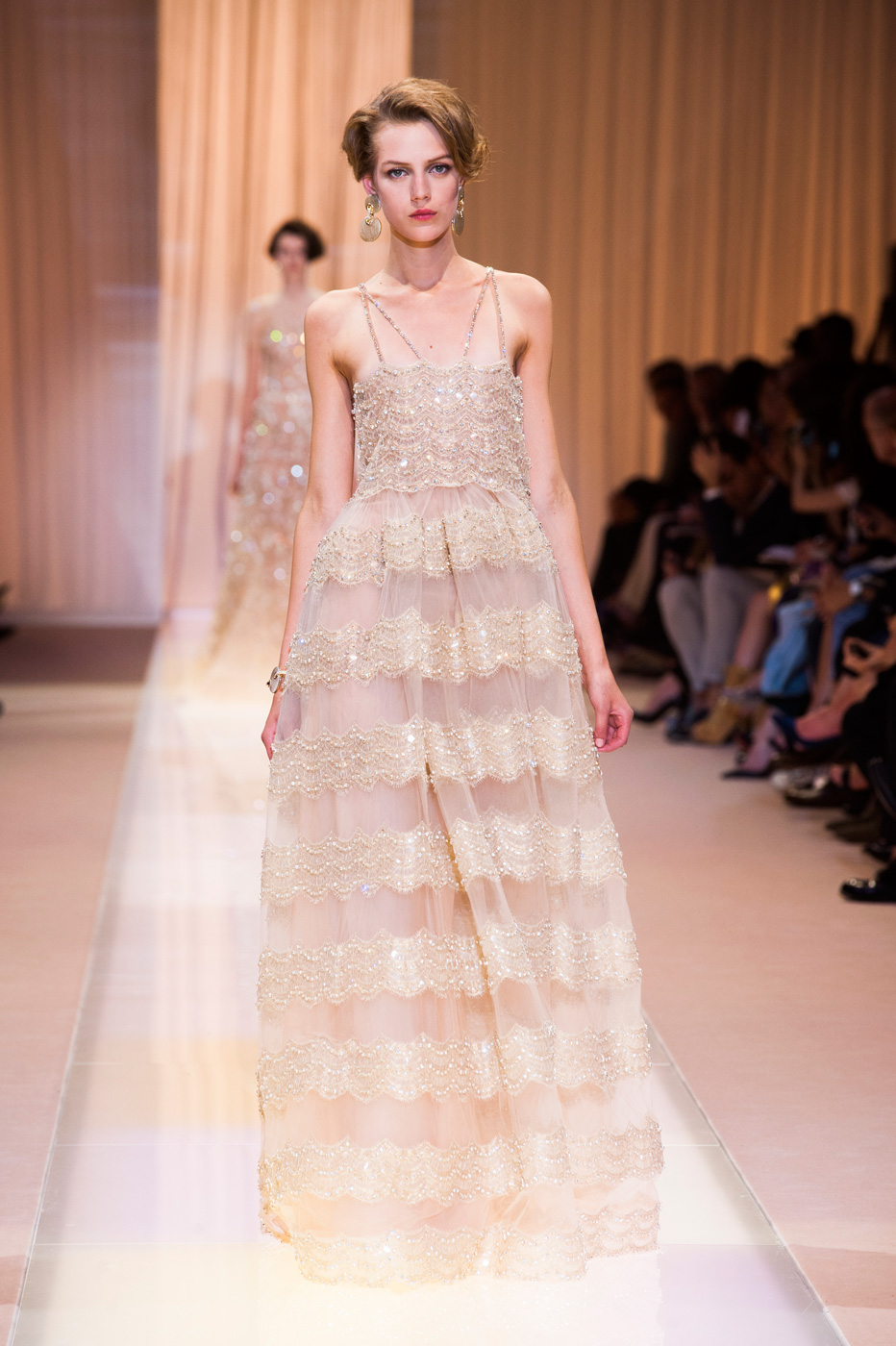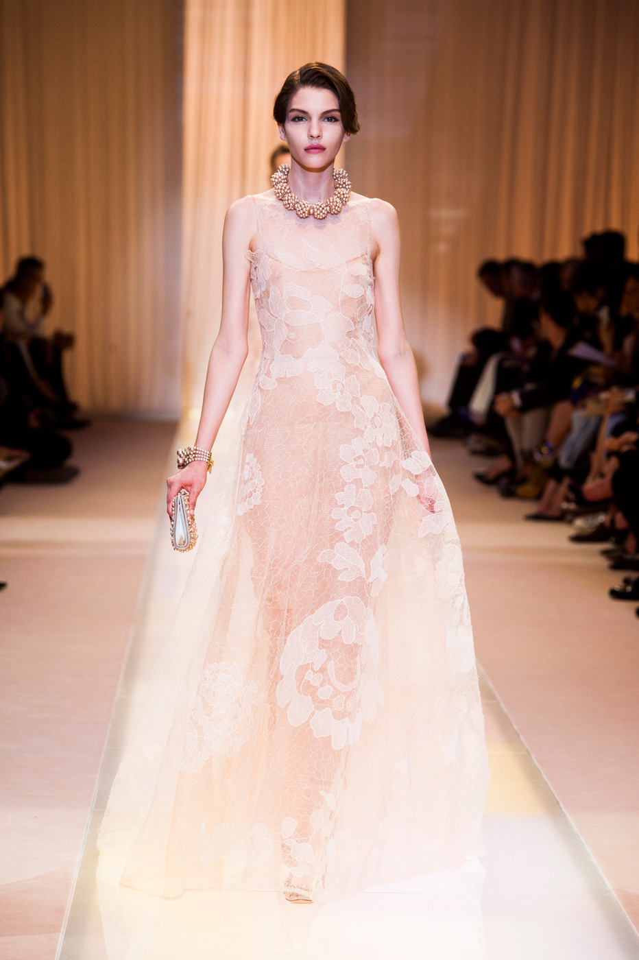 Джорджио Армани (Giorgio Armani) назвал кутюрную коллекцию Nude, но за кулисами использовал другое слово: «Элегантность». Так и было. Цвет пудры, нейтральный, бледно-розовый – любой из этих эпитетов подходит, чтобы описать палитру коллекции. Порой зрители путались в догадках – то ли это кожа модели, то ли ткань. Дизайнер не стал экспериментировать с кроем и сделал ставку на чувственность в стиле ар-деко и Золотого века Голливуда. После показа критики шепотом говорили друг другу: «Похоже, у Джорджио открылось второе дыхание».