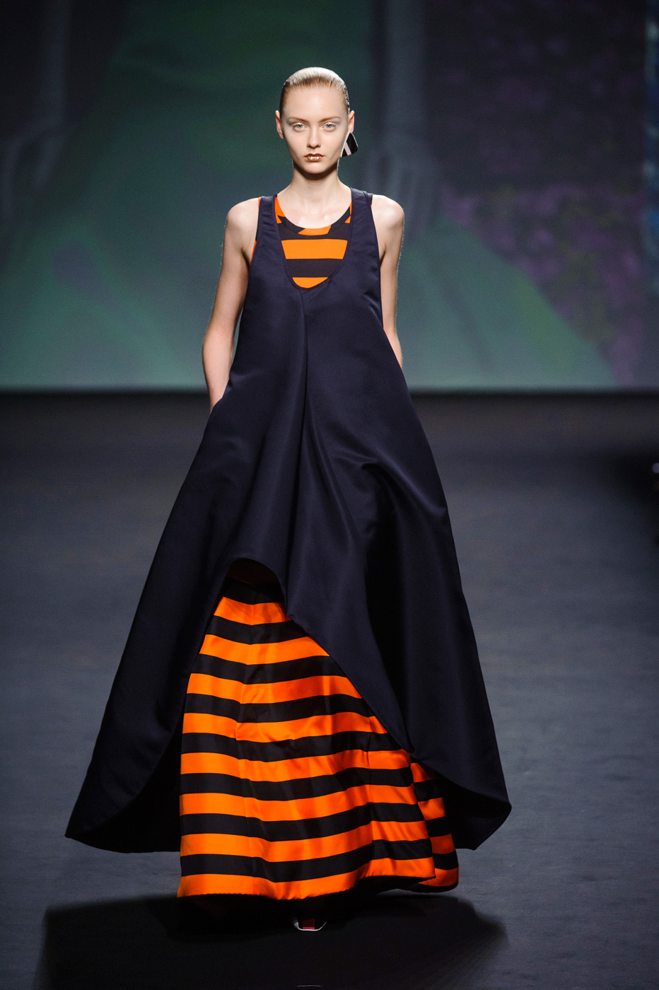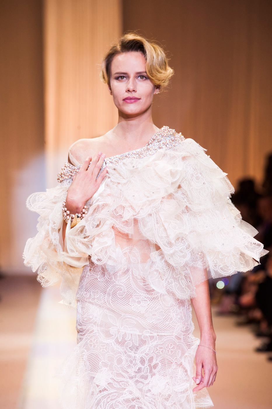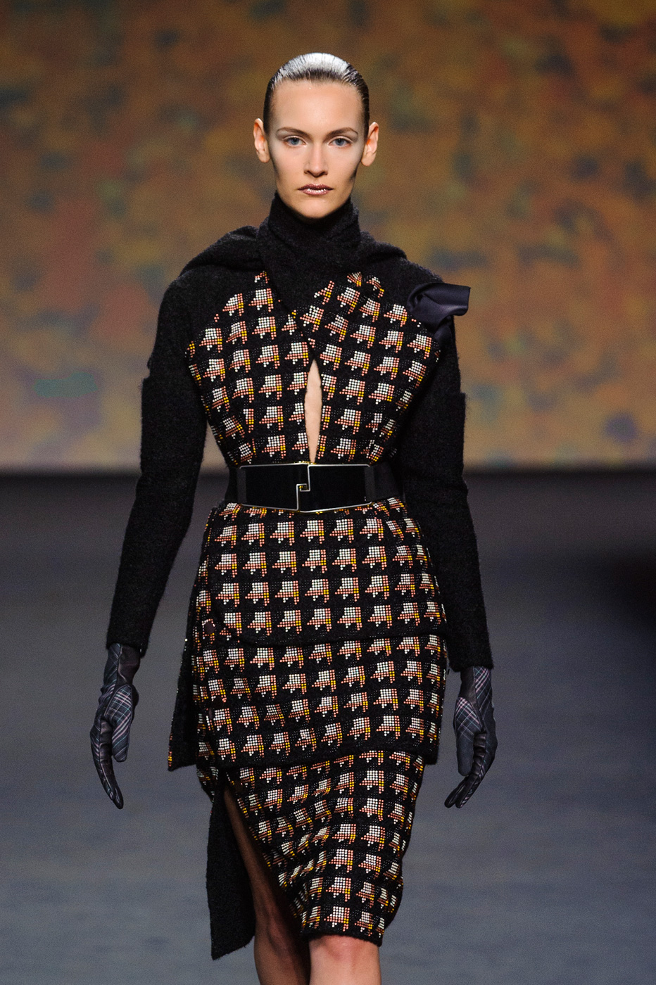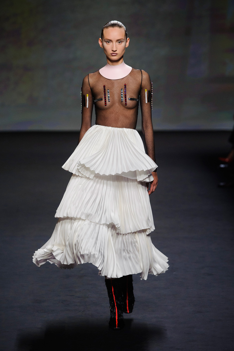 Гости, приезжавшие в Гранд-Пале на показ Chanel, оказывались в заброшенном старинном театре. Именно такие декорации для своего кутюрного шоу выбрал жесткий и бескомпромиссный Карл Лагерфельд (Karl Lagerfeld). Занавес распахнулся, и на полуразрушенной сцене на фоне огромной фотографии Города будущего стали появляться модели. Лагерфельд не просто так выбрал именно такую заставку для шоу – таким образом он противопоставил старый мир и новый мир, к которому мы все идем. Про коллекцию, впрочем, дизайнер сказал так: «Это традиция с большим будущим». Традиционные твидовые жакеты, викторианские силуэты, но при этом космические детали, сотканные будто из фольги или светящихся микросхем.