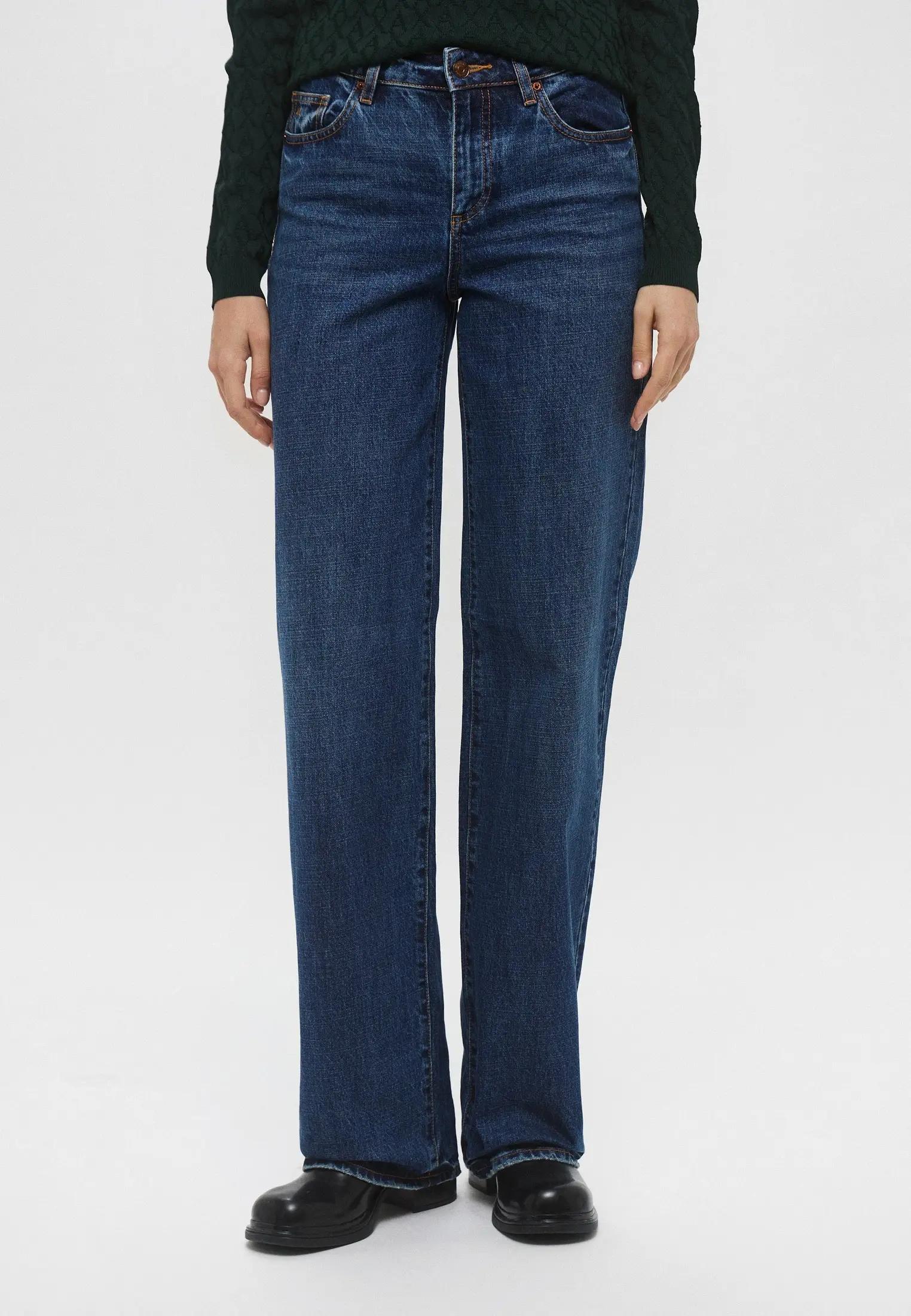 Прямые темные джинсы