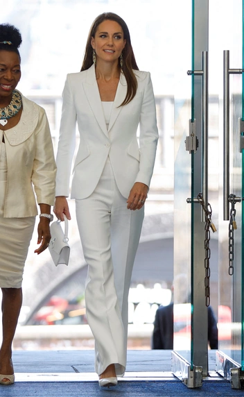 Вещи белых оттенков освежают любой образ. Они подчеркивают белки глаз и делают глаза визуально больше. Стилисты уверены, что как и черный, белый идет абсолютно всем. Считается, что чем старше женщина, тем светлее должна быть ее одежда. Особенно это касается вещей у лица. Кейт Миддлтон тоже уверена в том, что такой прием работает, поэтому супруга принца часто выбирает вещи в белых и молочных оттенках. Эффектные, чистые и минималистичные аутфиты подчеркивают благородство внешности и статус Кейт. Герцогиня Кембриджская носит лаконичные платья длины миди, безупречно скроенные костюмы, жакеты и пальто, которые освежают и делают моложе (читайте также: Три цвета в одежде, которые сделают образ дороже).