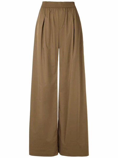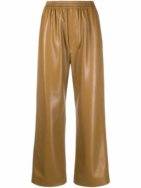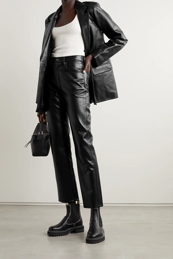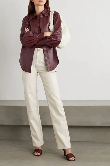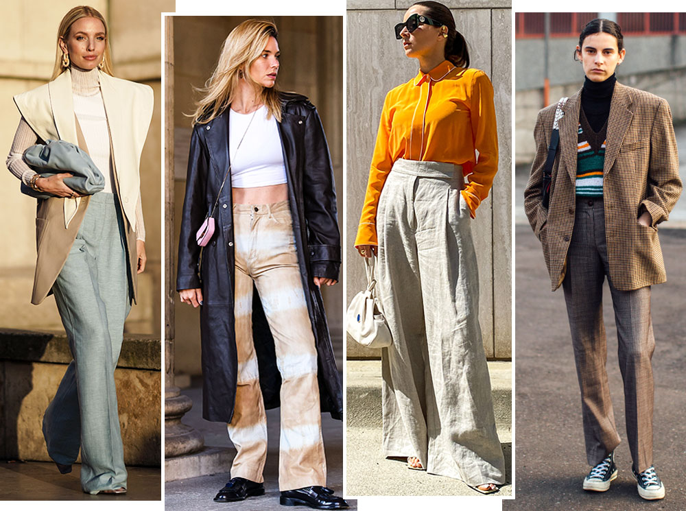 В будущем сезоне лидирует трикотаж, поэтому широкие брюки могут быть из тонкой шерстяной вязки и кашемира. Или наоборот из брутальной кожи, которая по прежнему актуальна. Оба материала можно миксовать с минималистичным пальто прямого кроя, тренчами и бомберами. И не стоить забывать про акценты — это могут быть яркие и геометричные аксессуары и обувь.