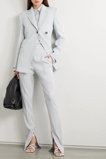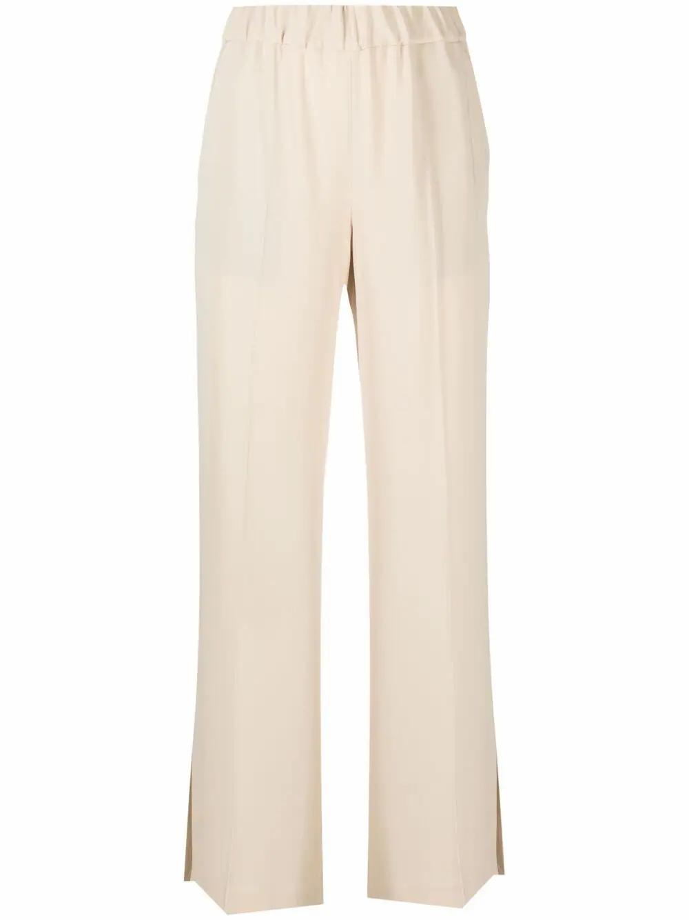 Разрезы создают вертикальные направляющие играя с пропорциями и обманывая наш глаз. Такие брюки хорошо вытягивают силуэт как при свободной штанине, так и при полном облегании, особенно если разрезы расположены спереди, а не сбоку.