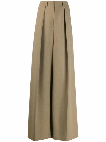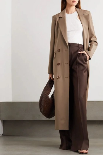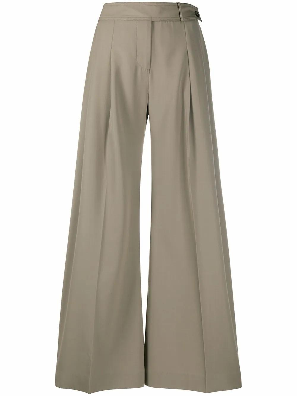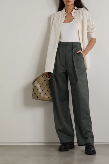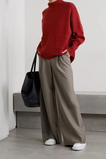 Брюки, способные максимально увеличить длину ног, за счет длины и формы. Их создают складки, которые начинаются от линии пояса и продолжаются по всей длине. Именно благодаря ним эти брюки занимают роль чуть ли не самых удлиняющих. Носить их можно с расслабленными джемперами, рубашками и укороченными жилетами, дополняя образы структурированными сумками.