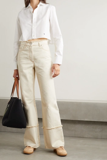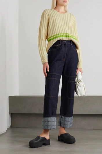 Прямые джинсы и брюки — спасательный круг для тех, кто устал от приталенных силуэтов и предпочитает свободный и комфортный на каждый день. Стрелки на этой модели брюк будут выглядеть свежо и добавят структуры оверсайз-комплекту как на осеннем показе Valentino. В тандеме даже с плоскими челси или грубыми лоферами, такие брюки объединят два желания: комфорт и пропорциональный силуэт, в одно целое и сверхактуальное. Дополняем прямые силуэты в новом осеннем сезоне объемными трикотажными свитерами и кардиганами, а рубашки с мужского плеча набрасываем вместо пиджака вторым слоем.