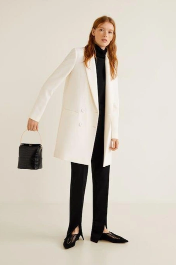 Разбавлять такую позицию в гардеробе предлагаю строгим пиджаком с посадкой по плечам и крупными мазками из объемного шопера и серег — универсальный прием. Кто-то скажет ультрамодные, а на деле — еще и ультравытягивающие. Все вертикали работают на вытягивание силуэта, поэтому для тех, кто к этому стремится, этот прием будет полезен еще долгие годы.