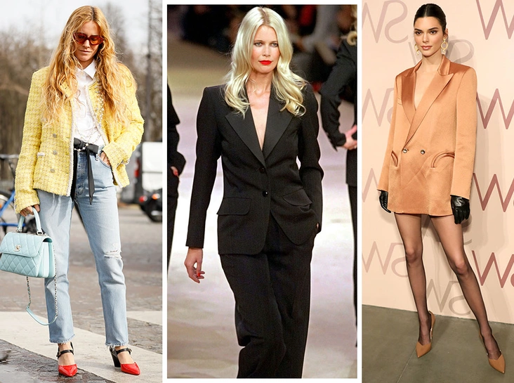 Классический жакет из плотного материала с четкой посадкой по плечам и кроем, который держит форму. Он может быть как приталенным, так и прямым или оверсайз, выполненном в базовом цвете. Такой жакет структурирует любой образ. Подобные жакеты можно найти не только в люксовых брендах, но и в более бюджетных — например, в 12Storeez, Zara и Arket. Также не забывайте про винтаж и популярный прием стилистов: любой жакет, даже мужской, можно перешить под себя.