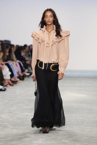 Второй шаг — сочетание с правильным низом. Вместо скинни и светлых джинсов выбираем прямую или слегка свободную модель без агрессивных потертостей. Добавляем благородную замшу: пояс, мюли, сапоги на невысоком каблуке, миниатюрную сумку на длинном ремешке. В итоге кружево перестает быть единственным акцентом и становится частью фактуры образа — в лучших традициях Chloé. Если хочется еще сильнее приземлить романтику, сверху можно накинуть кожаную куртку или плотный тренч — тогда ажур будет выглядывать только в движении, и это будет похоже на эстетичный стоп‑кадр из французского кино (читайте также: Почему Чемена Камали — самый гениальный дизайнер 21 века?).