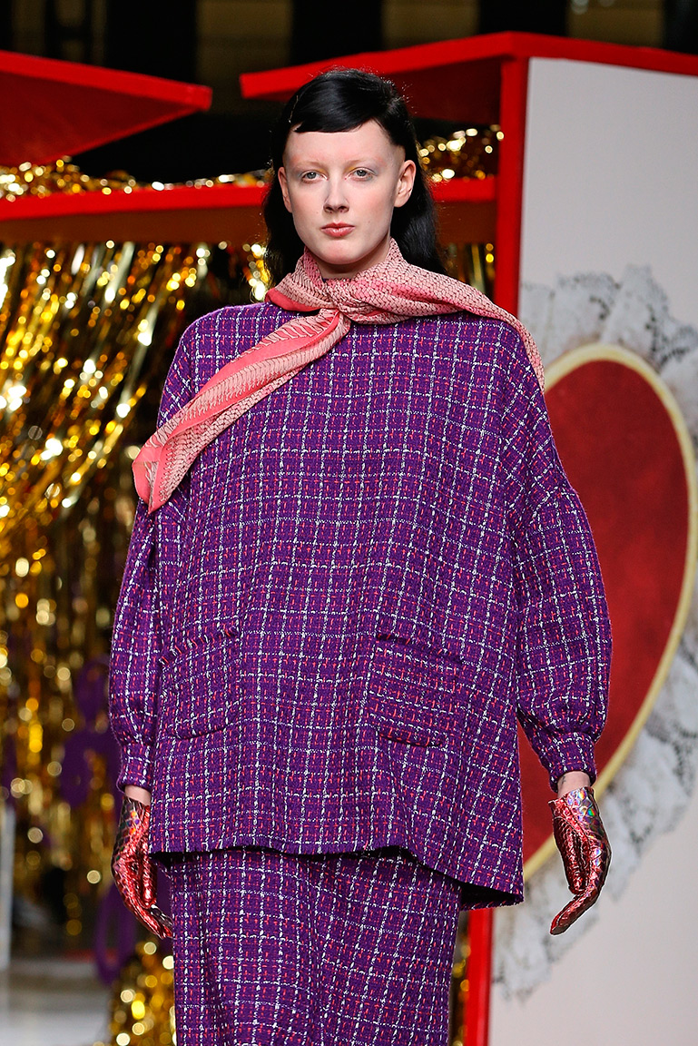 Осенние пальто выполнены в виде блестящей чешуи экзотической рыбы, а твидовые костюмы oversize прошиты серебряными люрексовыми нитками.