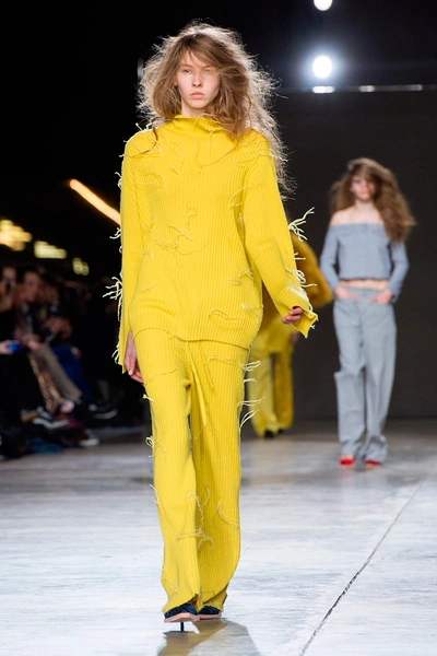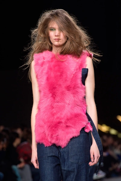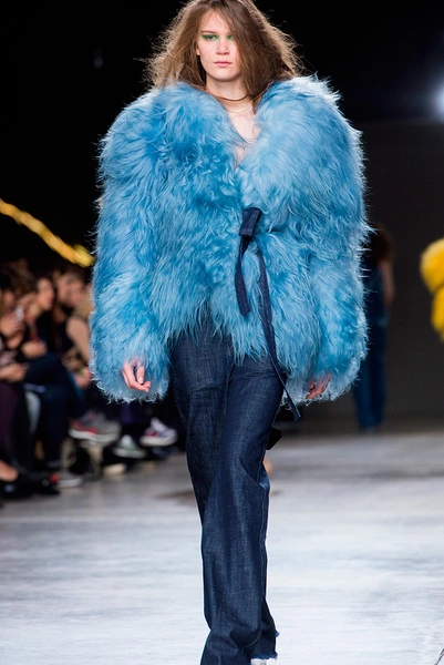 Деним никуда не делся, но теперь его прикрывают огромные шерстяные воротники и жилеты самых ярких оттенков – желтых, красных, розовых и голубых.