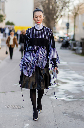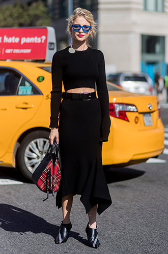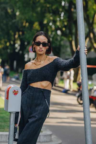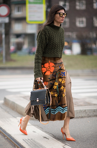 Радуйтесь, противники массивной одежды в холода, перед вами — зимний вариант кроп-топа. Конечно, погодные реалии нашей страны не позволят повторить смелые образы с открытым торсом с показа Fendi, поэтому к такому джемперу все же лучше выбирать юбку или брюки с завышенной талией. Хорошо будет смотреться и накинутый сверху жакет (при условии, что свитер не слишком плотный), и сарафан, тоже надетый сверху, например, вельветовый или из мягкой кожи.