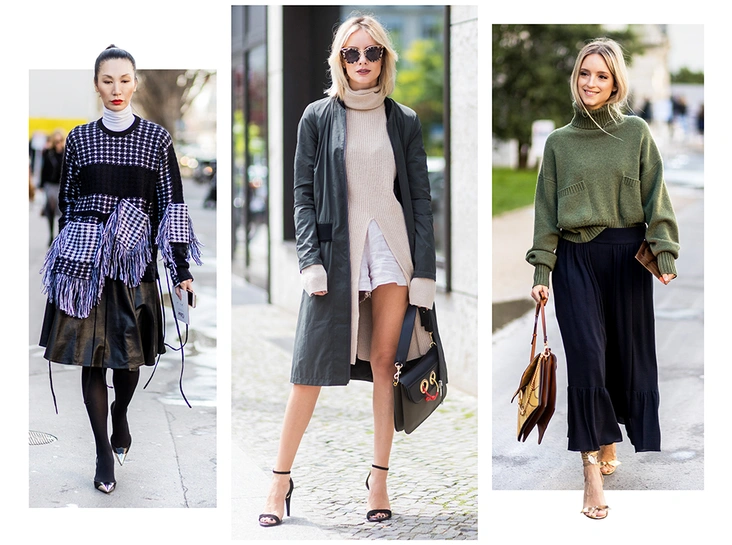 Если полагаете, что трикотажное платье — это либо бесформенная вязаная масса размера oversize, либо удлиненная облегающая водолазка, которая комплиментирует разве что фигуру Беллы Хадид, расширяем ваш кругозор: сегодня можно найти самые разные фасоны — от повседневных моделей A-силуэта, до парадно-выходных макси-длины, с бархатными или кожаными вставками. Ну а к объемным платьям-джемперам всегда можно добавить широкий пояс и/или каблуки и выглядеть женственно и даже сексуально. Под вязаное платье лучше выбирать плотные матовые колготки и закрытую обувь — ботфорты, винтажные туфли, балетки. Уместен и пиджак или жилет, и кожаная куртка (стильный контраст кожи и трикотажа заслуженно любим многими дизайнерами и звездами стристайла).