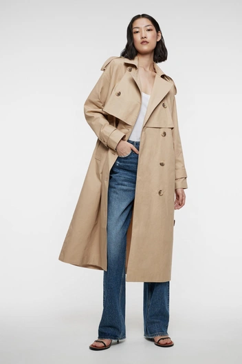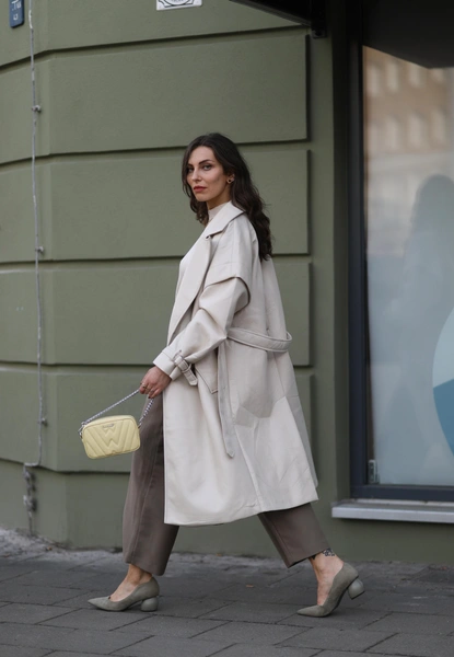 Тренч — официально самая модная и стильная верхняя одежда, которая дошла до нас со времен ушедших эпох в неизменном виде. Светло-бежевый цвет, пояс с пряжкой, два ряда пуговиц, эполеты и обязательный ружейный клапан — настоящая дань армейскому прошлому (читайте также: 6 моделей весенней обуви, которые всегда выглядят дорого — их носят женщины с хорошим вкусом). При выборе плаща советуем обратить внимание на плотный материал и пастельные оттенки, например, песочный, шоколадный, темно-синий и черный.