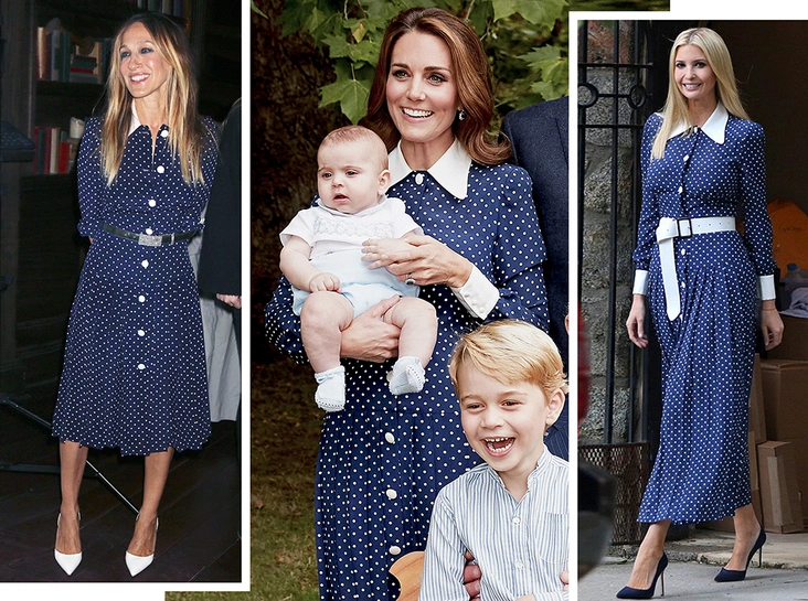 Единственное, что решают переиграть в образах все героини, – это акценты на талии. Иванка Трамп делает ретро-стиль более современным и выбирает широкий белый ремень, Сара Джессика Паркер – тонкий и едва заметный ремешок, а Кейт, похоже, отказывается от каких-либо поясов совсем.