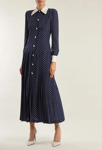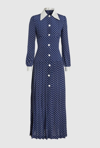 14 ноября в сети появились милые семейные фотографии, сделанные в честь 70-летия принца Чарльза. На них – его главное окружение: супруга Камилла, сыновья с невестками и внуки. Конечно, модных критиков в первую очередь привлекло авторство нарядов герцогинь Кембриджской и Сассекской. На фотосессии Кейт Миддлтон предстала в темно-синем платье с принтом полька-дот, контрастными белыми манжетами, воротником и акцентными пуговицами.