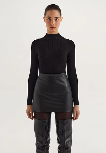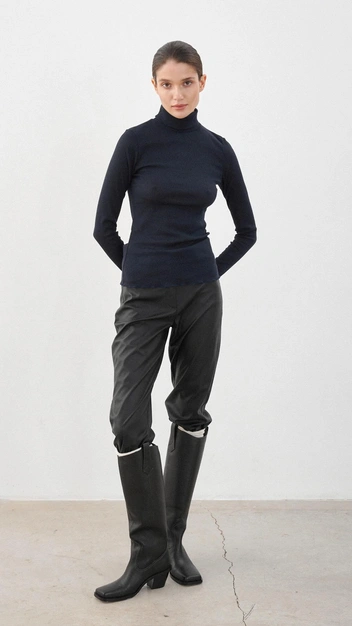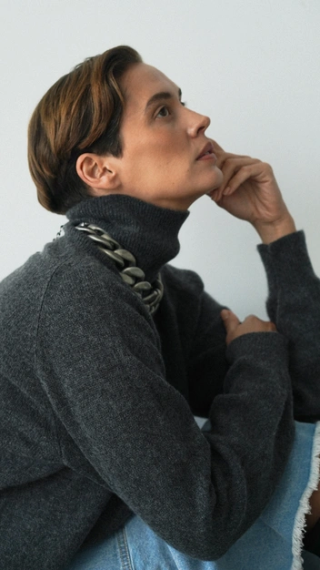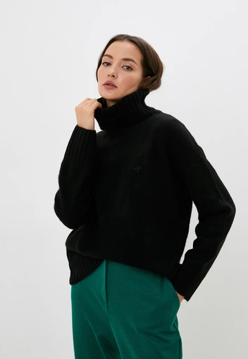 Главным элементом зимнего аутфита является кашемировый или шерстяной свитер с высоким воротом, который защищает от морозов и делает образ женственным и элегантным. Он сочетается не только с брюками, но и платьями, и юбками длиной миди, выполненными из трикотажа, денима или кожи. Такой аутфит идеально подойдет для рабочей встречи, в котором вы будете выглядеть стильно и при этом официально. Дополните образ массивными серьгами-кольцами, небольшой фактурной сумкой и остроносыми ботильонами.