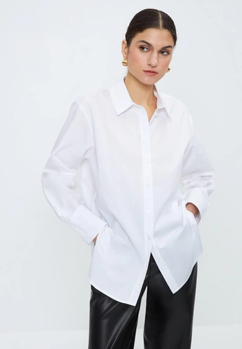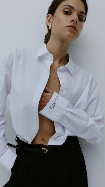 Еще одно незаменимое сочетание, ставшее классикой — рубашка с мужского плеча и брюки. В таком аутфите можно пойти в офис, на встречу с друзьями или на свидание, правда, для последнего повода мы бы расстегнули верхние пуговицы и накрасили губы алой помадой. Присмотритесь к рубашкам однотонных оттенков из плотных материалов и подберите прямые брюки на высокой талии. Такой аутфит лишь на первый взгляд кажется простым и скучным, а вы попробуйте его дополнить украшениями и аксессуарами.