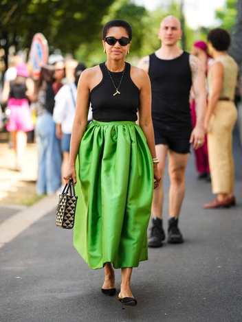 Черный цвет — классика, которая есть в гардеробе каждой из нас. Этот цвет идет всем без исключения и может подчеркнуть фигуру любой девушки. Для этого необязательно облачаться в черный тотал-лук, вы можете точечно скорректировать «нежелательные нюансы», например, бедра, живот или руки, надев одежду черного цвета в той зоне, где это необходимо. Присмотритесь к брюкам прямого кроя на высокой талии, пиджаку прямого кроя или свободной футболке.