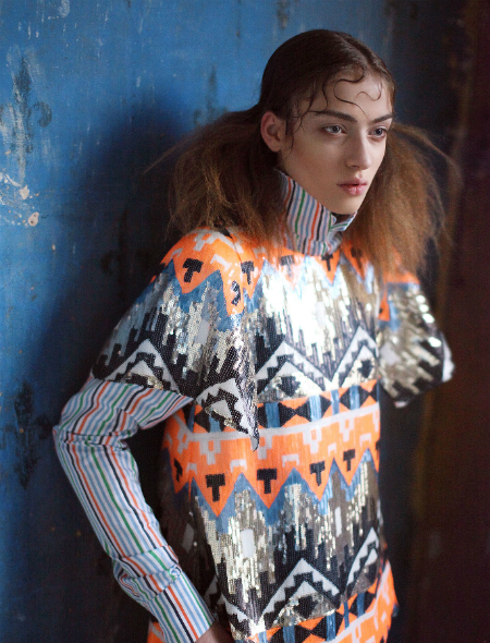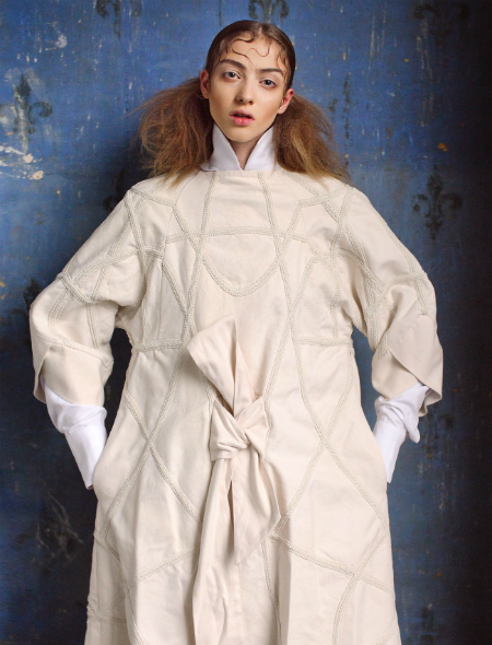 Путешествия нынче в моде. Саша Феоктистова вчерашняя студентка Британской Высшей Школы Дизайна ищет вдохновение в экзотических поездках, и ей, похоже, это отлично удаётся. Её модели основаны на замысловатом плетении из разноцветных нитей, которые для самого дизайнера символизируют связь между разными мирами. Феоктистова говорит со своей публикой метафорами и аллегориями удивительным образом переданными в моделях. Статичный космос, так определяет свои работы сама надежда российской моды.