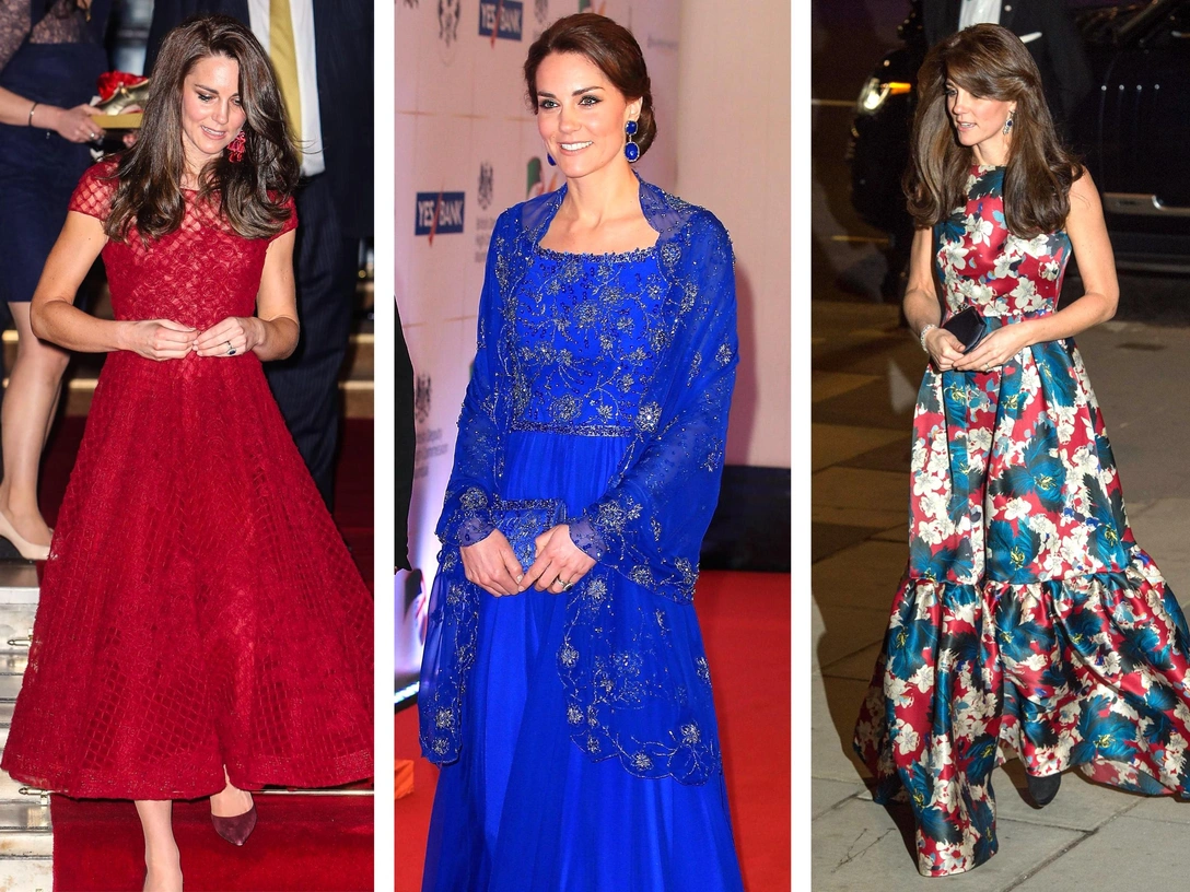 В туре по Индии в 2016 году монаршая особа надевала одни из самых красивых платьев, которые точно затмили болливудских звезд. Но зачастую неправильно подобранный наряд по тифу фигуры или цвету выглядит не так выигрышно, как это могло бы быть. Например, этот образ от Jenny Packham в королевском синем оттенке подходит Кейт Миддлтон, однако золотые узоры и накидка придают ей возраст (читайте также: Стильное положение: как одеваются беременные королевы, принцессы и герцогини).