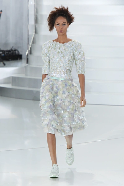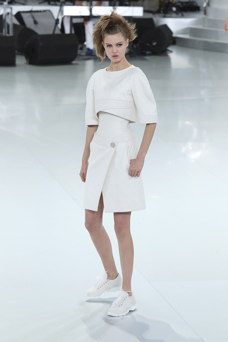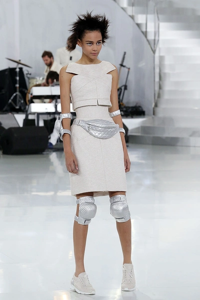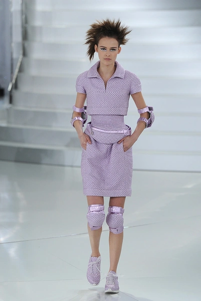 Карл Лагерфельд (Karl Lagerfeld) создал коллекцию, состоящую из пастельных оттенков и спортивных элементов. Его модели выходят на подиум в классических твидовых костюмах и кроссовках, дополняя наряд серебристыми наколенниками и налокотниками. В некоторых ансамблях спортивные аксессуары выполнены "в цвет" с самим платьем.