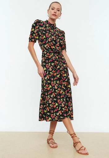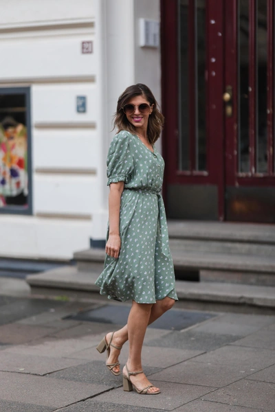 Платье на пуговицах и с поясом «звучит» в каждом образе по-своему. Например, если вы дополните его босоножками с завязками и фактурной кожаной сумкой, у вас получится элегантный выход для деловой встречи или мероприятия. А если к платью-рубашке подобрать кеды в винтажном стиле — образ станет непринужденным и повседневным.