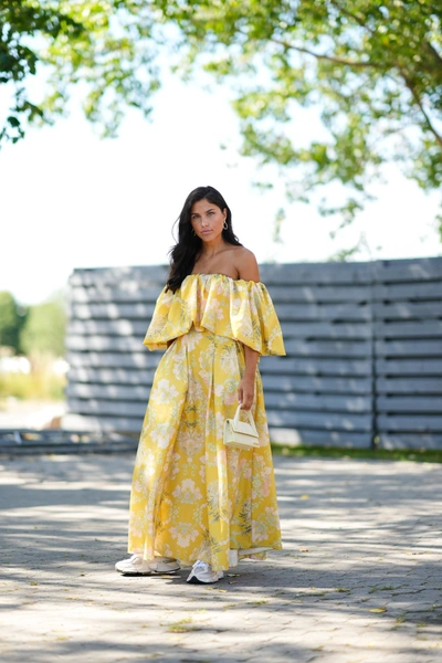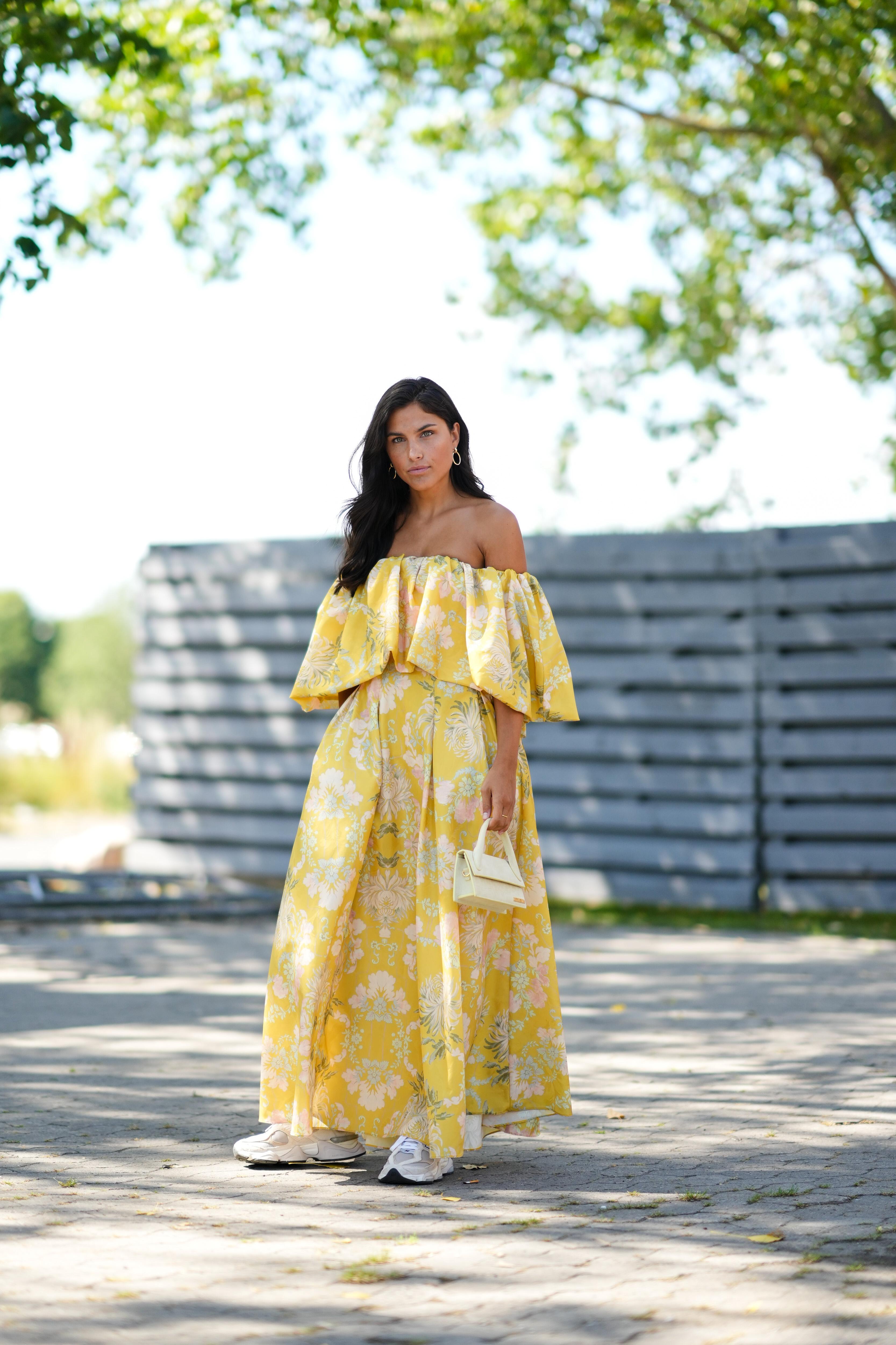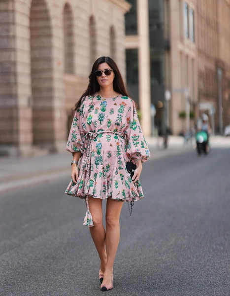 В тренде вновь рукава-фонарики, которые уже украсили блузы и цветочные платья. Они придают наряду легкость и театральность, поэтому остаться в таком платье незамеченной у вас не получится (читайте также: Полный гид по самым модным платьям весны и лета 2023). Так как главную роль здесь играют рукава, остальные детали аутфита должны быть лаконичными: подбирайте к нему минималистичные туфли, изящную сумку и аккуратные украшения.