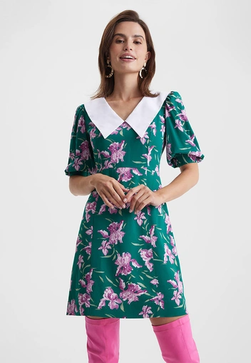 Платье с акцентным белым воротником ворвалось в женскую моду несколько лет назад, но оно настолько покорило девушек, что осталось с нами, кажется, навсегда. Оно может быть длины мини или миди, с рукавами-фонариками или напоминать по крою блузу на пуговицах и с манжетами. Самое главное в таком наряде — острый отложной воротник, который придает образу элегантность и строгость и превращает классическое цветочное платье в самое модное.