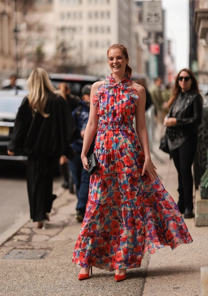 Оно может быть быть без бретелей и плотно держаться на груди или же иметь завязки, обвивающие шею, — такие образы уже выбирает для своих аутфитов Эмили Ратаковски, одна из поклонниц винтажного стиля. Поскольку зона декольте украшена элементами платья, не перегружайте ее аксессуарами и оставьте свободной, надев лишь серьги или кольца.