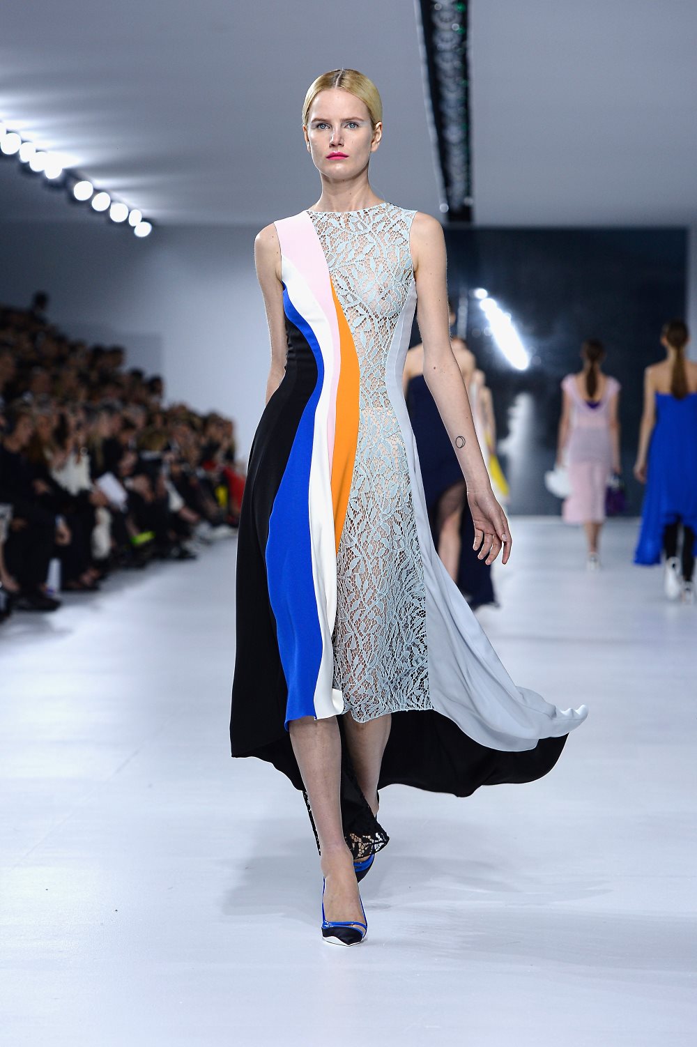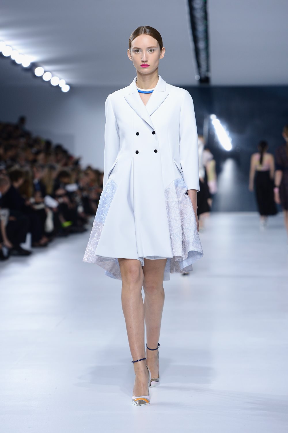 Ребекка Коуп (Rebecca Cope), Harper’s Bazaar UK: «Прозрачное кружево, цветочные принты и металлические оттенки помогли отвлечься от невеселой погоды благодаря фирменной современной эстетике Симонса, сиявшей сквозь тучи».