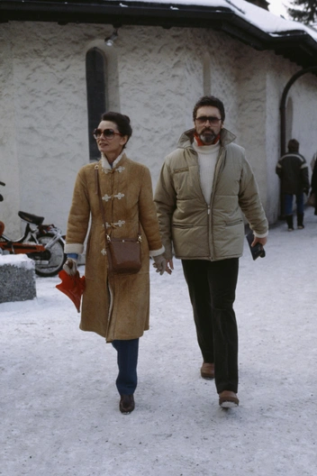 Дубленка самого классического варианта расцветки camel, классические джинсы оттенка индиго, сумка кроссбоди из лакированной кожи, собранные волосы и обязательно круглые широкие очки в стиле 60-х. Это фото было сделано 23 декабря 1982 года, и мы с вами наглядно видим — выбирая элегантную классику можно всегда выглядеть актуально.