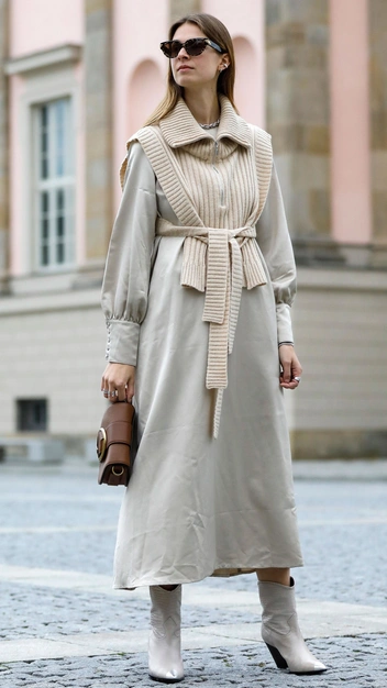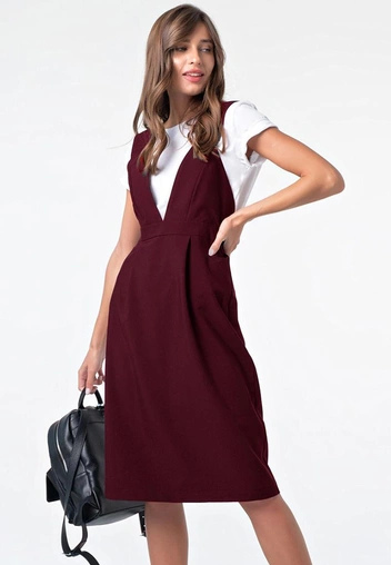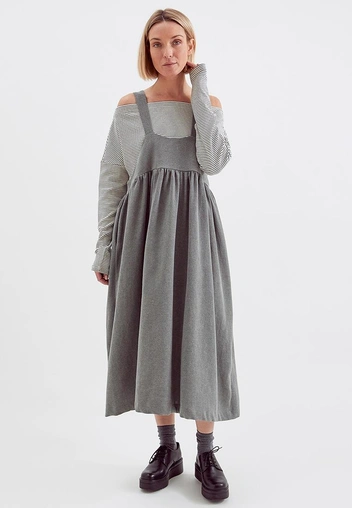Еще один универсальный вариант — сарафан и легкое платье простого кроя или А-силуэта с короткими или длинными рукавами. Эта модель может быть опциональной, но если вы все же решите ее приобрести, она станет одной из самых функциональных единиц гардероба. Сарафан можно носить летом на голое тело с босоножками или сандалиями, для вечера — в ансамбле с роскошными аксессуарами или лодочками. А с наступлением холодов такое платье можно носить поверх водолазок или с объемными оверсайз-свитерами. А чтобы ваше приобретение подходило к зимнему и летнему гардеробам, выбирайте модели из натуральных материалов.