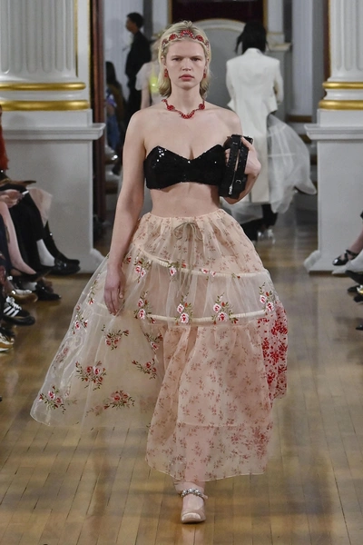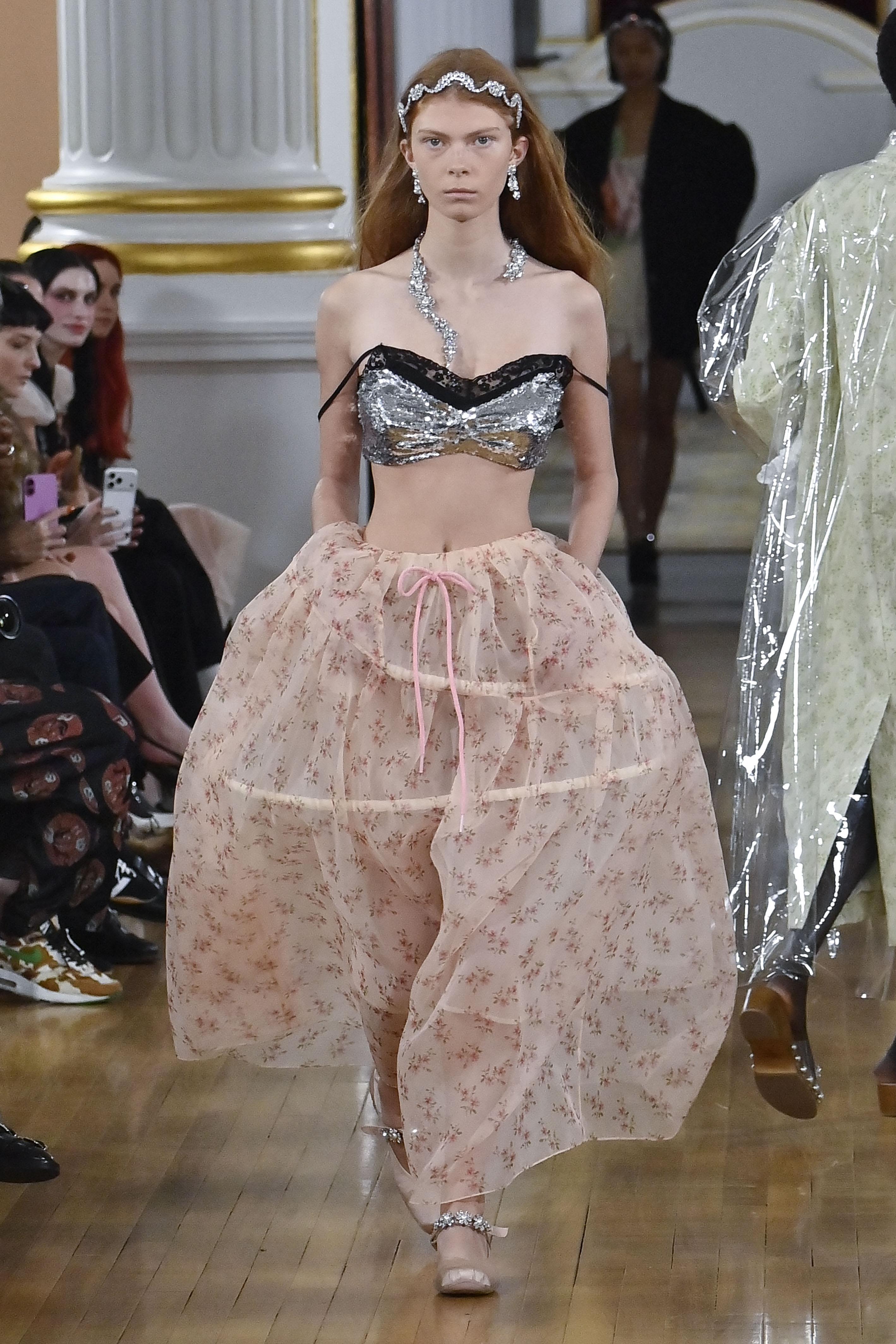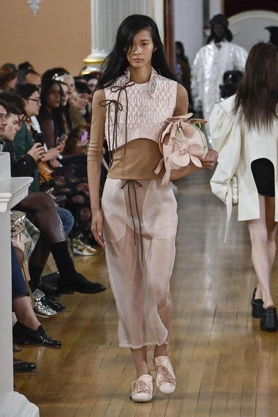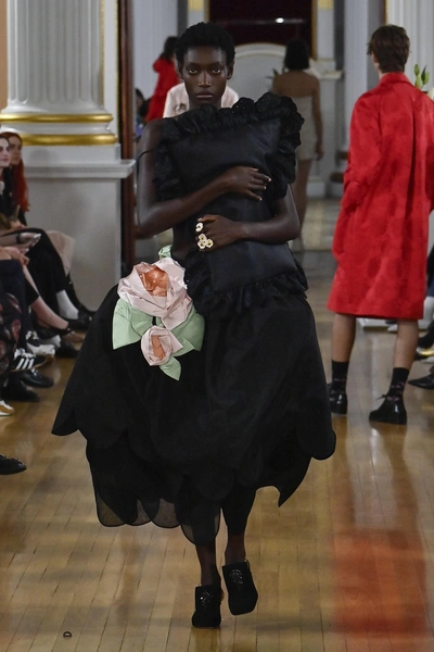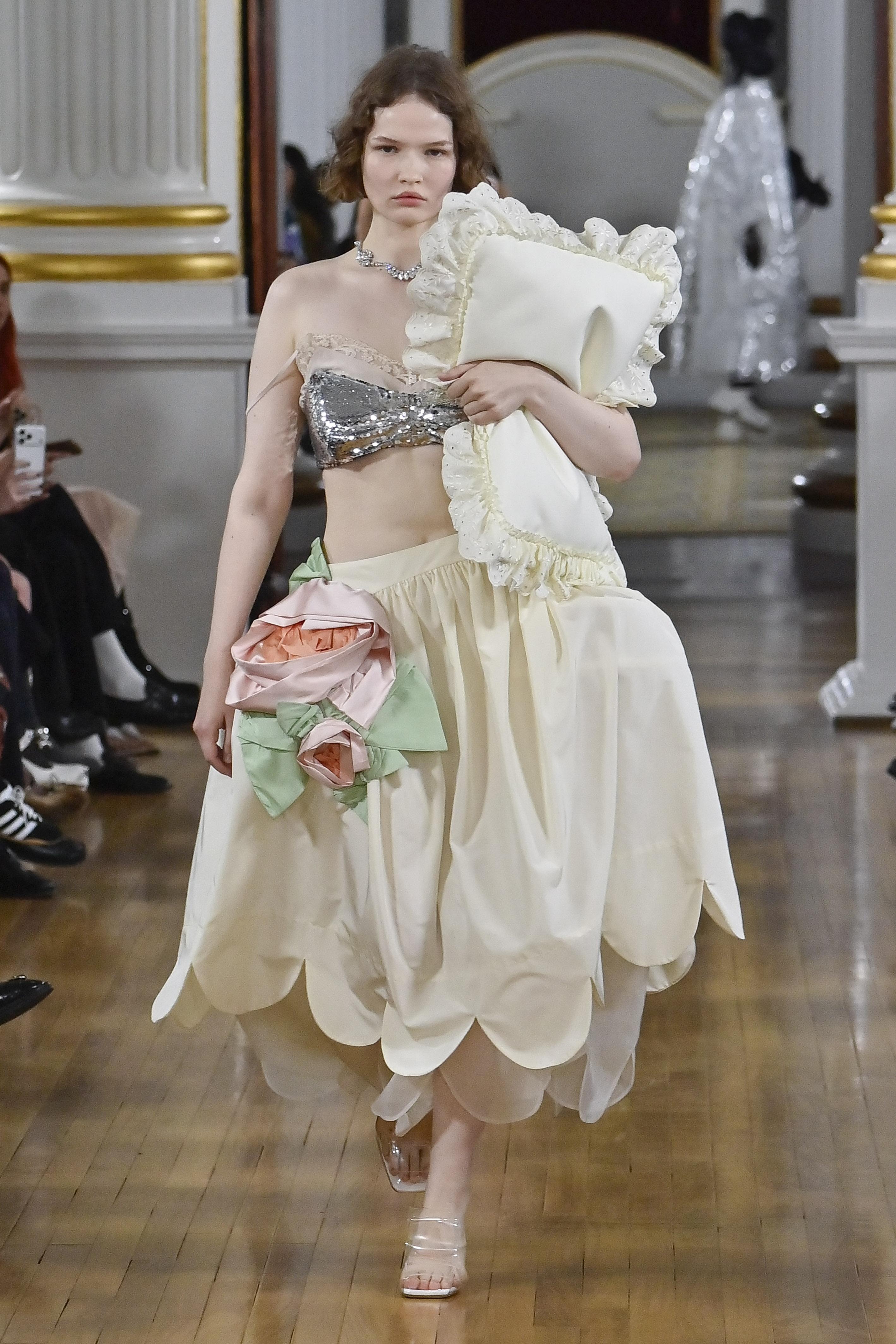 Simone Rocha в новом сезоне тоже идет по следам инфантилизации моды. Правда, если у Chopova Lowena наряды подходят скорее куклам Bratz, то в случае с этим брендом мы наблюдаем за очаровательными, нежными, практически сказочными персонажами.