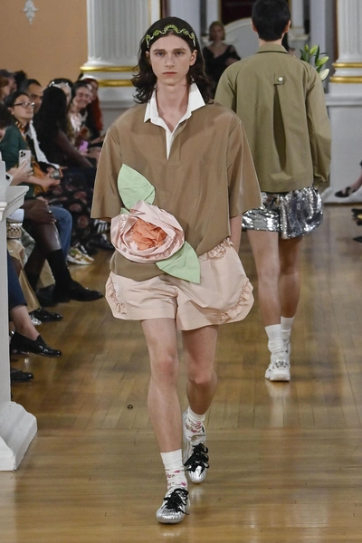 Взять на вооружение стоит разнообразие цветов: те, кто готовится выйти замуж могут вдохновиться брендом и отойти от традиционного белого. А если брак в ближайшее время не планируется, то смело берем из шоу Richard Quinn цветочные композиции, бархат, оперные перчатки — и вписываем в повседневный осенний гардероб (читайте также: Броши от Prada и благородный бархат: 10 трендов на сезон осень-зима 2025 с мужской Недели моды).