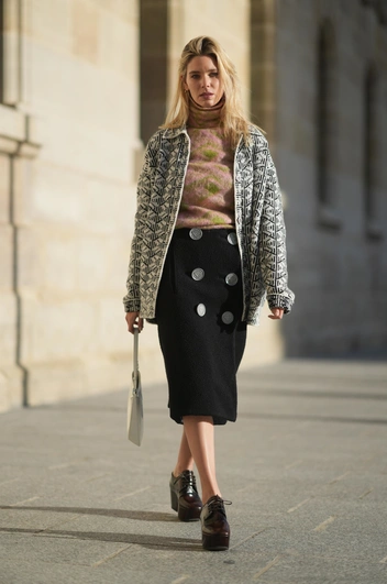 Надев бадлон вместе с трикотажной облегающей юбкой, вы не получите модного аутфита — вас ждет, скорее, устаревший и безвкусный выход (читайте также: 6 вещей, которые нельзя носить с юбкой — эти грубые ошибки совершает большинство женщин). С какой юбкой тогда носить водолазку? Предлагаем присмотреться к моделям мини и карандашу, но акцент нужно сделать на разных фактурах, например, выбрать джинсовые, кожаные или шерстяные варианты.