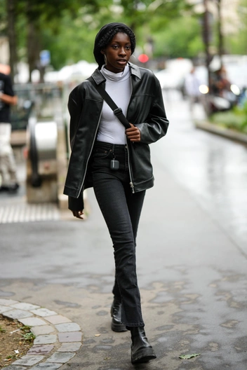 В мире, где стало так много фактур, силуэтов и стильных решений, девушки продолжают носить узкие джинсы с облегающей кофтой. Сегодня это считается дурным вкусом, да и смотрится такой образ дешево, поэтому мы предлагаем решение. Наденьте бадлон с прямыми кожаными брюками (читайте также: Избавьтесь от них немедленно: 5 моделей брюк, которые нельзя носить женщинам после 40 лет). Во-первых, вы будете стилизовать в одном выходе разные материалы, что будет эффектно смотреться друг с другом. Во-вторых, облегающий верх будет сбалансирован более свободным низом.