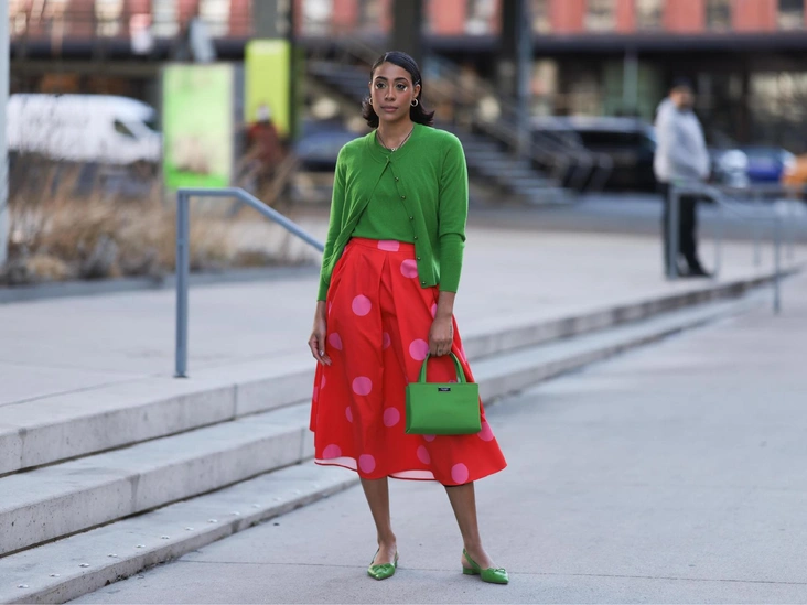 Перед вами одно из самых противоречивых сочетаний, которое будет уместно смотреться лишь на немногих девушках. И хотя зеленый и красный находятся в цветовом круге друг напротив друга, что является признаком их совместимости, в образе они выглядят противоречиво. Красный тон считается провокационным и дерзки, в то время как зеленый намекает нам на благородство и спокойствие.