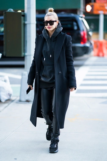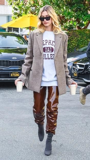 Пожалуй, нет тренда, который нравился бы Хейли больше, чем оверсайз. Кто не хочет одновременно выглядеть стильно и чувствовать себя комфортно? Все, что для этого нужно — примерить толстовку большого размера и леггинсы или приталенные джинсы. Хейли Бибер нередко так и делает: в закромах гардероба супруга она может найти несметное количество модных сокровищ, которые она легко миксует с собственными вещами и любимыми аксессуарами. Хейли обожает олдскульные наряды в стиле 90-х из джинсов свободного кроя, объемного свитера в мужском стиле и кожаного блейзера. Завершат наряды любимые очки в стиле ретро или бейсболка (ее тоже можно позаимствовать у супруга). Еще одно поле для экспериментов — гиперобъемные пальто. Благодаря укладке и женственной сумочке эта вещь выглядит современной и элегантной, что помогает достичь идеального баланса между мужественным и женственным (читайте также: 9 вещей из мужского гардероба, которые стоит забрать себе).