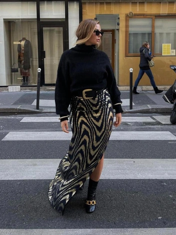 Юбка-карандаш создана для того, чтобы сделать фигуру женственной и изящной, главное — правильно подобрать длину. Важно помнить, что место, где заканчивается элемент одежды, всегда привлекает внимание, поэтому выбирайте модели до щиколоток или ниже колена (читайте также: 5 роковых ошибок девушек plus size, или Почему у вас не получается выглядеть стильно в любом весе). Стилизуйте юбку-карандаш с монохромным верхом: кашемировыми свитерами и водолазками. Если же вам хочется получить расслабленный образ, тогда предлагаем надеть футболку, трендовую рубашку и даже свитшот.